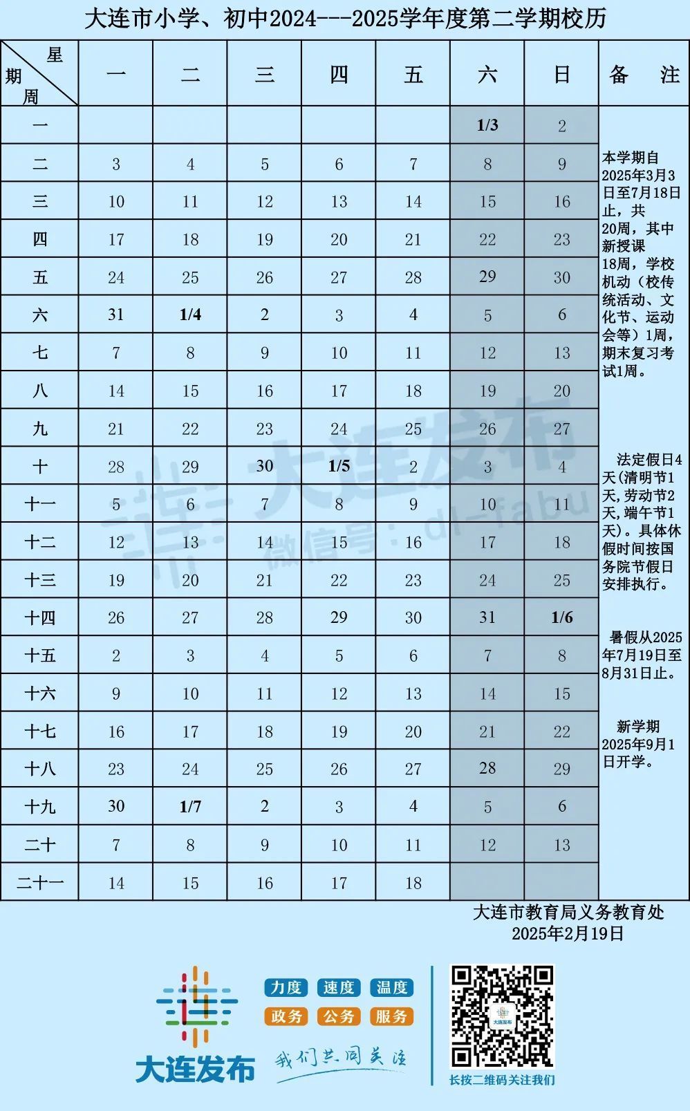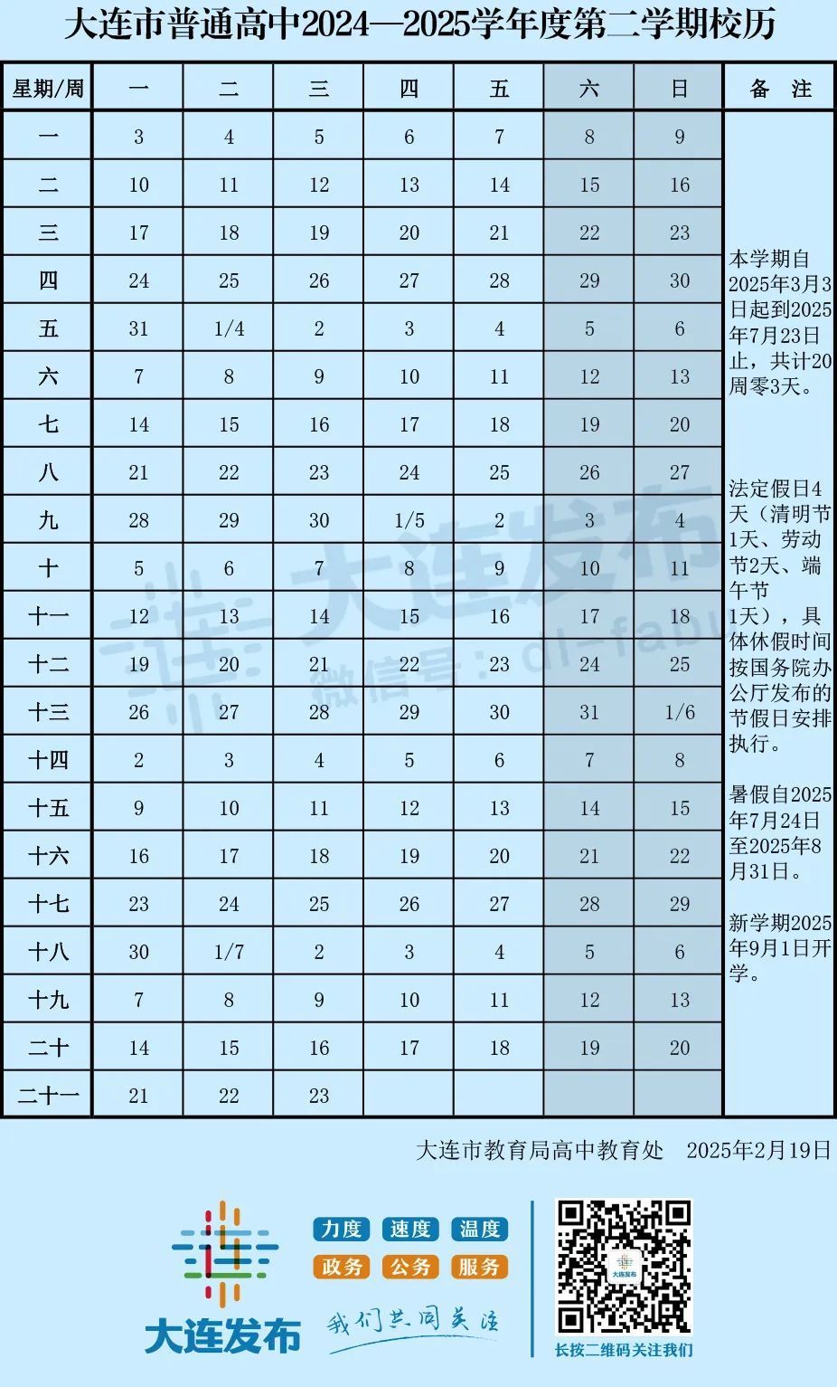 本学期自2025年3月3日至7月18日止,共20周,其中新授课18周,学校机动(校传统活动、文化节、运动会等)1周,期末复习考试1周。